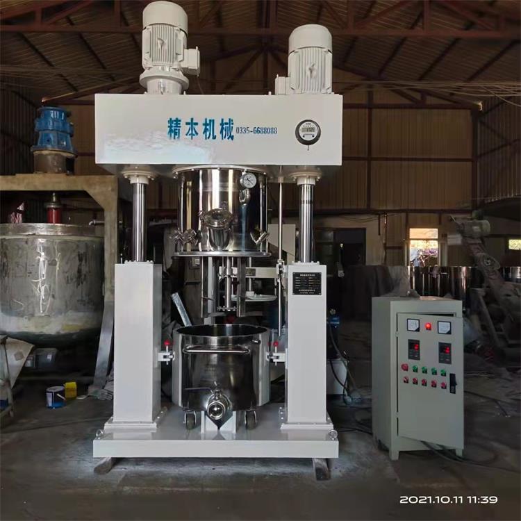 雙行星攪拌機根據行星運動(dòng)軌跡設計,攪拌結構有低速攪拌器、高速攪拌器、以及相應的刮板裝置組合而成。雙行星攪拌機的雙組低速攪拌器自轉的同時(shí)繞著(zhù)軸心進(jìn)行公轉,而且低速攪拌器的形式根據不同的物料粘度和生產(chǎn)工藝選擇不同的攪拌形式,常見(jiàn)的攪拌形式包括槳葉式、麻花式、爪式、框式等結構,具備良好的混合、反應、捏合、溶解的作用;高速分散器由多層具備極高線(xiàn)速度的鋸齒狀分散盤(pán)組成,它同樣在高速自轉的同時(shí)繞著(zhù)軸心進(jìn)行公轉,能夠將粉料(助劑)快速的分散到漿料里,具備很強的分散作用;刮板裝置根據客戶(hù)實(shí)際的生產(chǎn)工況選配。