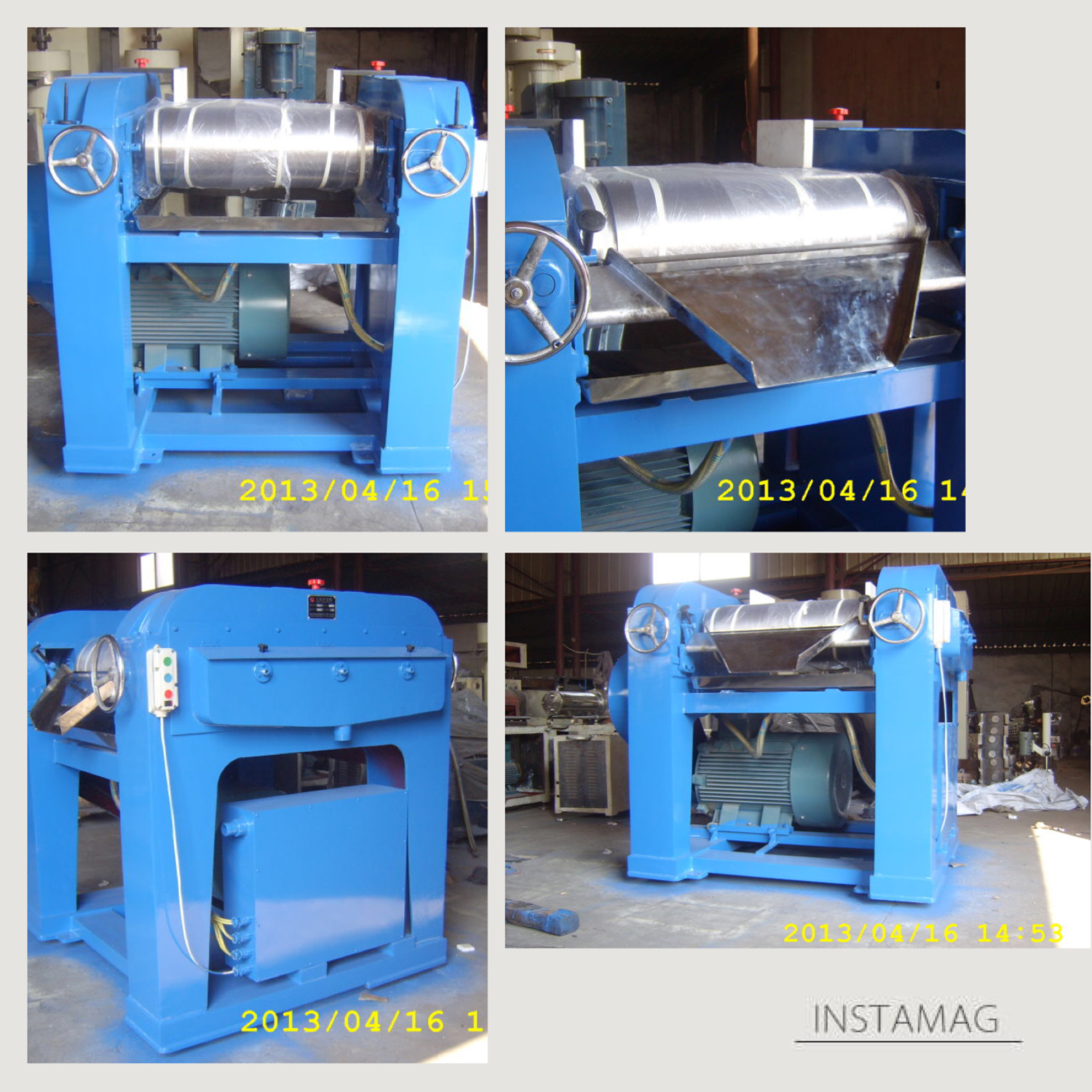 三輥研磨機適用于細度要求較高的膏體或高粘度物料使用。該機通過(guò)水平的三根輥筒的表面相互擠壓,手動(dòng)式調節輥筒之間的間距,以不同速度的摩擦達到研磨效果??裳b有緊急制動(dòng)按鈕,防止落入異物導致的設備損壞。輥子使用特殊硬質(zhì)合金澆鑄而成;也可以使用大理石材質(zhì)。傳動(dòng)采用鏈條傳動(dòng)、齒輪調輥。