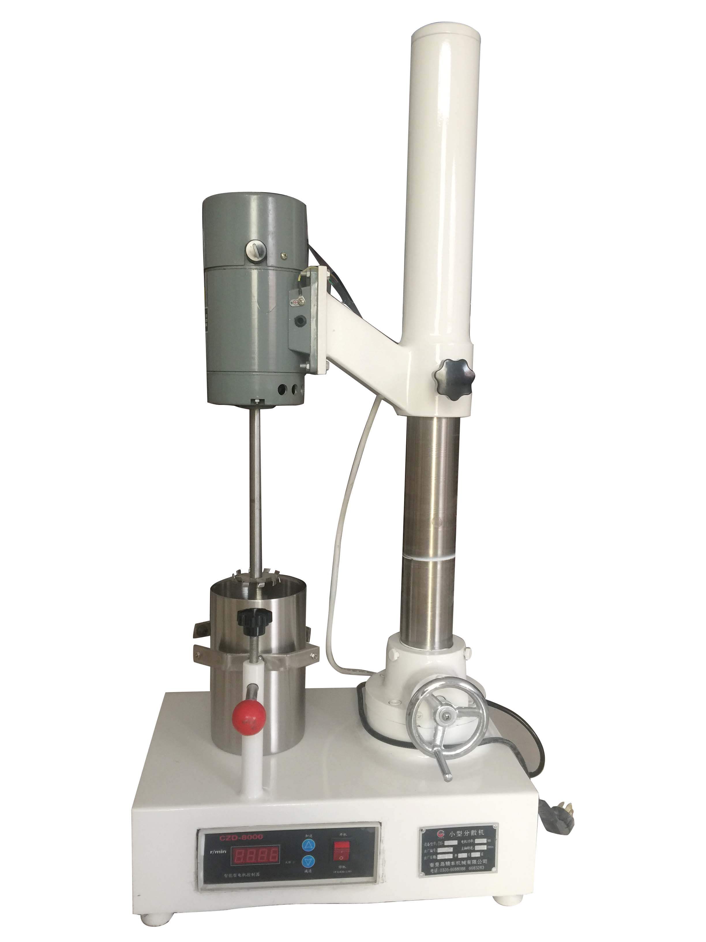 本機為臺式,不需特別安裝,使用時(shí)平放于工作臺面或辦公臺面即可工作,必須擺放平穩,以免高速時(shí)產(chǎn)生振動(dòng),升落為螺桿式,需升落時(shí)轉動(dòng)右側大手輪正時(shí)針為升起,反時(shí)針為下落,調速前必須鎖緊電機支架把手,升落前要松開(kāi)鎖緊把手,接通220V,打開(kāi)開(kāi)關(guān),指示燈亮通過(guò)調速旋扭,正時(shí)針為升速,反時(shí)針為降速,調速時(shí)嚴禁無(wú)物料高速運轉,加料分散時(shí)特別注意:一定要由低速慢慢調到高速達到適當速度為止,以免造成物料飛揚,影響分散效果。